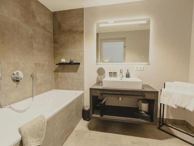 Relax in the open-plan living and dining area, featuring large panoramic windows that showcase the majestic Tyrolean Alps. Enjoy cozy evenings by the fireplace or prepare your favorite meals in the fully equipped kitchen. Each bedroom includes an en-suite bathroom, offering privacy and convenience for every guest.