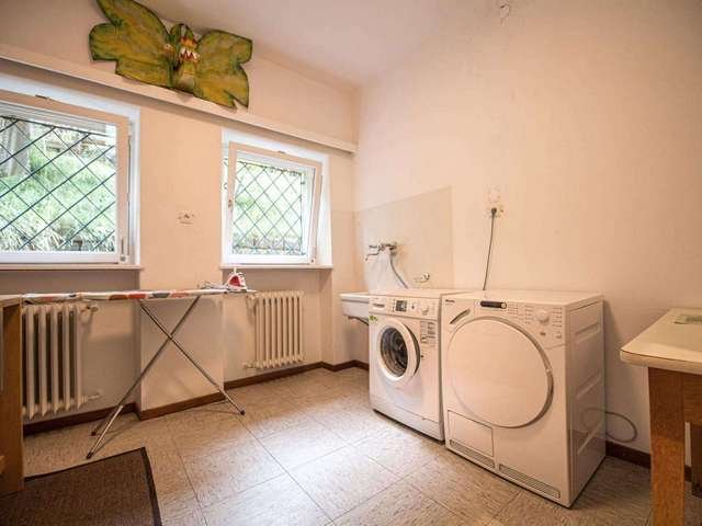 The property consists of no less than three floors, including a basement, a ground floor and a top floor.The ground floor consists of a regal foyer with an exposed staircase leading to the upper floor, a spacious living room with TV and a panoramic view, a separate kitchen with direct access to the garden, a stube that serves as a dining room with a view, a laundry room with washing machine and a dryer and a small bathroom with WC and washbasin.The first floor, on the other hand, accommodates a total of 5 bedrooms(of which 3 are double rooms and 2 are twin room with connectable beds), 3 complete bathrooms (all with windows), 2 of which are equipped with both bathtub and shower, and one with shower only.All 3 bathrooms have a bidet. In addition, there is another small bathroom on the floor, equipped only with a toilet and washbasin. The master bedroom is particularly large and is the only one with an entire walk-in wardrobe and private bathroom. On this floor there is also a small south-facing balcony accessible from one of the bedrooms. Finally, the basement features a small private wellness area, equipped with sauna (for 4 persons), shower, whirlpool and relaxation loungers.The separate kitchen is equipped for your holiday and features, a hob, dishwasher, oven, microwave, fridge with freezer, coffee machine, cooking utensils, crockery, cutlery, direct access to the garden, and much moreA wonderful south-facing private garden surrounds the house and together with the large terrace, will allow you to relax in the sun, enjoying a breathtaking view of the Val Gardena Dolomites! The small private wellness area is ideal for relaxing after a day of sport in the Dolomites. You can regenerate in the Finnish sauna and relax your mind and body in the small whirlpool. There is also a shower and relaxation loungers.The house has 3 floors in total, the ground floor is elevated and only accessible via two flights of stairs. There is no internal access from the garage, only from outside.