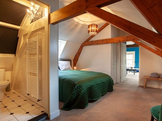 The apartment has fantastic king-size beds, a large bright dining room/kitchen, a nice living with a beautiful view at the canal, the ancient town hall and the St. Jan (famous church) and three badrooms.