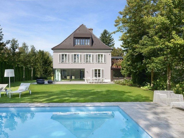 A generous amount of space over approx. 287 m² of living space with an exquisite ambience, luxurious furnishings with exquisite materials and a sunny dream garden with pool and sauna house make this beautiful family villa, a rarity in Nymphenburg. On the ground floor there is a spacious living / dining area with a fireplace and TV lounge, a kitchen and a guest toilet; the upper and attic floors house four bedrooms, a studio-like children’s area, a study and three bathrooms.