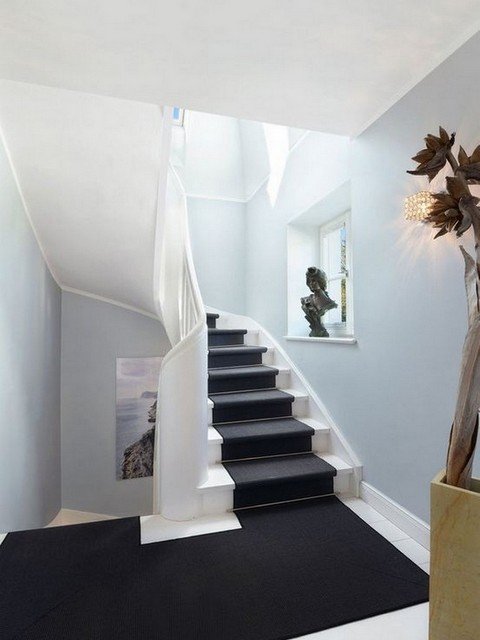- Originally preserved oak staircase, carefully refurbished and equipped with a custom-made anthracite-colored sisal runner