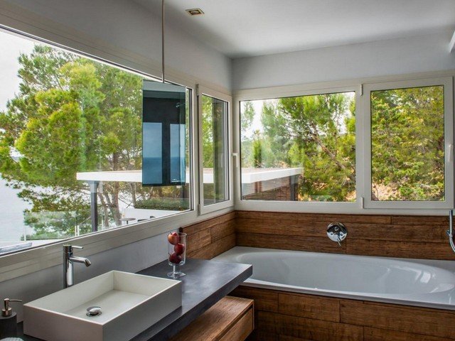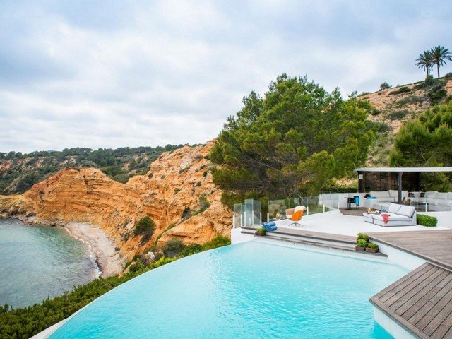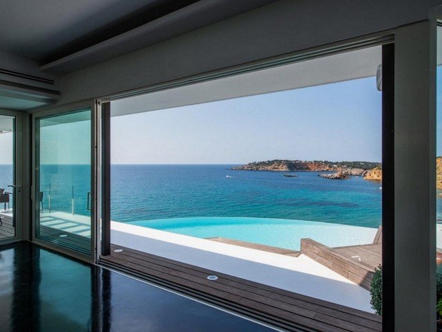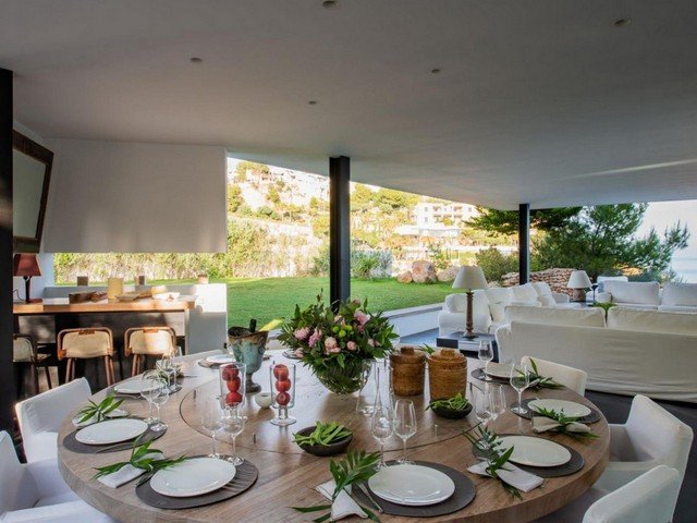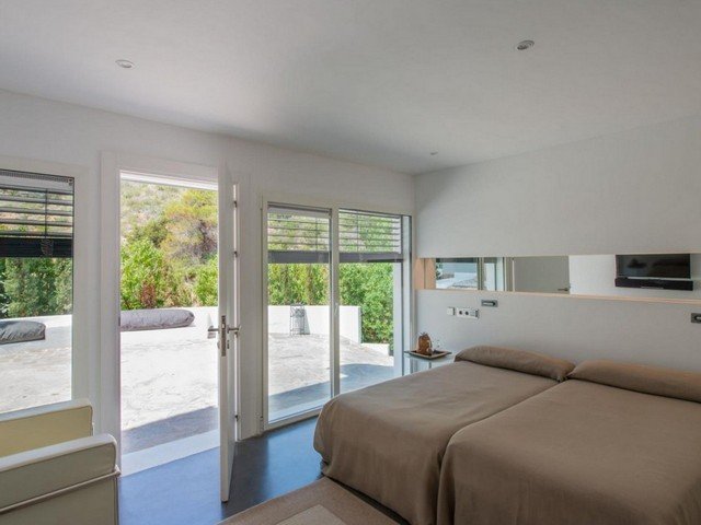 The villa is located in the exclusive gated community of Vista Alegre overlooking the natural harbour of Es Porroig and the island of Formentera. It’s just a few minutes away from the upscale beach clubs and chic restaurants of nearby beaches Es Cubells, Es Torrent, and Cala Jondal.