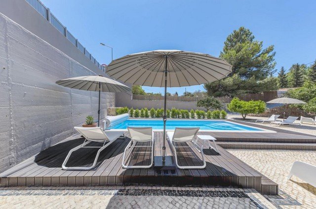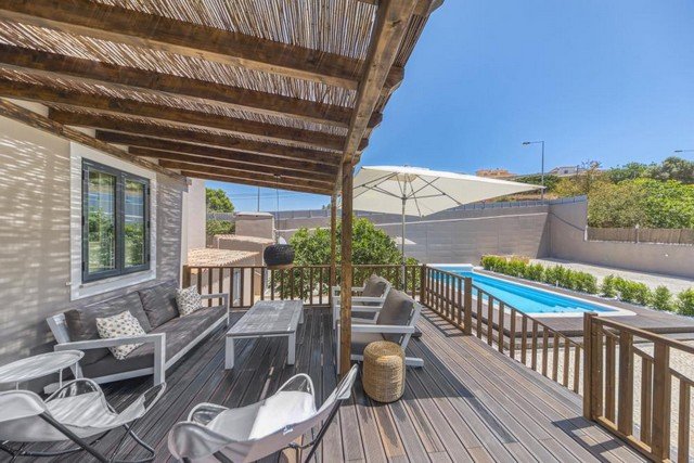 Ferragudo Beach enjoys a beautiful garden brimming with fruit trees, box hedge, an alfresco dining and lounge terrace, various wooden decks, a glorious pool and parking for up to four cars. The decks are beautifully furnished and some offer shade. For barbecue masters, there is a large gas barbecue to complete the picture. You will not regret booking this delightful, stylish gem, especially once you realise the soft sands of the beach are just moments from the villa.