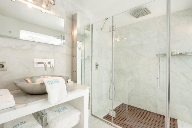Guests can soak up the views from the heated infinity swimming pool or walk just steps to the sea and enjoy the sandy beach.
