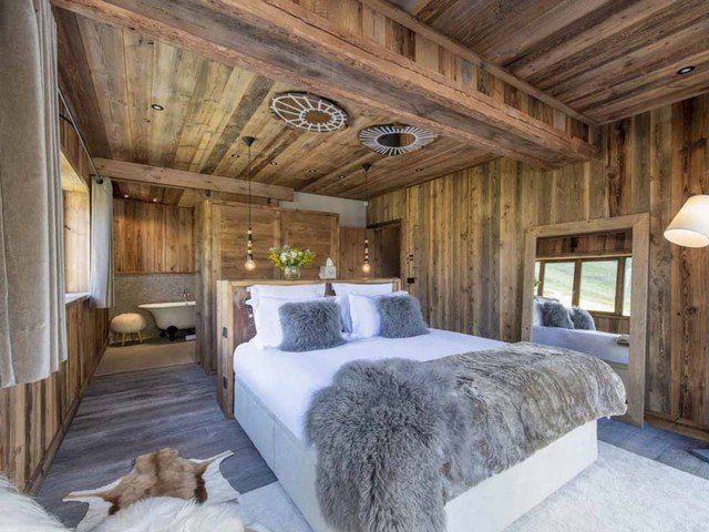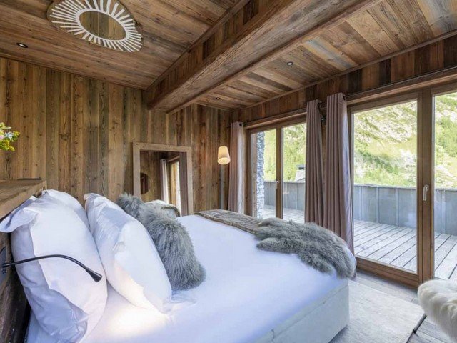 Each of the five beautifully appointed bedrooms features a king-size bed and a private ensuite bathroom, providing privacy and sophistication for every guest. The interiors showcase a harmonious balance of contemporary architecture and natural materials — combining clean lines, warm wood tones, and expansive windows that frame the surrounding mountain landscape.