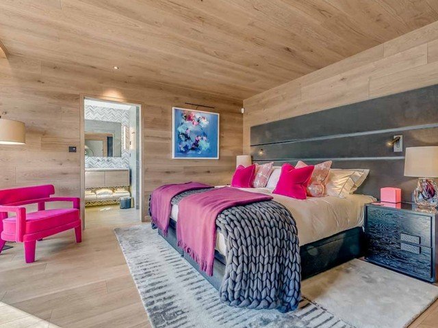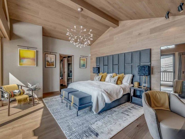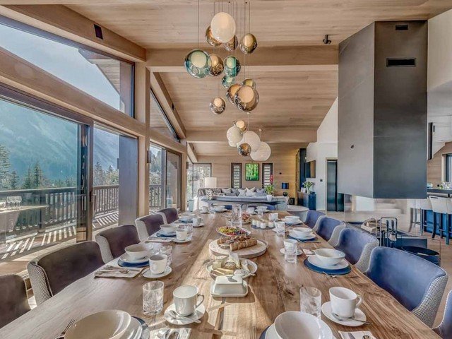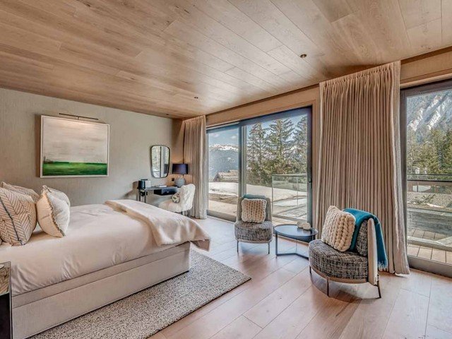 Every detail of this chalet has been crafted to the highest standard, combining authentic mountain charm with contemporary elegance. The property features seven spacious ensuite bedrooms, each designed with warm alpine materials, luxurious linens, and panoramic mountain views.