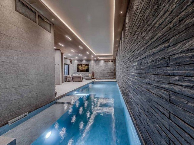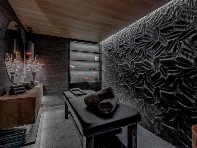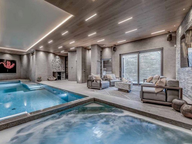 For relaxation and après-ski indulgence, the chalet offers a private wellness area complete with sauna, hammam, jacuzzi, and indoor swimming pool, as well as a cinema room and ski room with direct slope access.