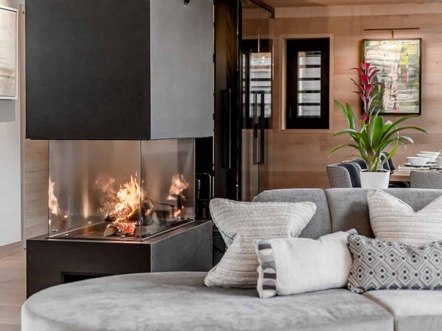 The vast open-plan living area boasts cathedral ceilings, large bay windows, and a majestic fireplace — creating a cozy yet sophisticated atmosphere for gatherings. A fully equipped gourmet kitchen and elegant dining area provide the perfect setting for entertaining family and friends.