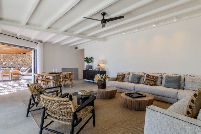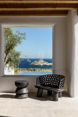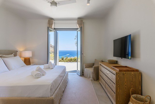 The villa is located in the southeast of Mykonos, just 250m from the golden sands of Kalafati beach, one of Mykonos’s most beautiful. There are three restaurants on Kalafati Bay and a watersports centre offering windsurfing lessons and equipment hire (as well as SUPS and kayaks).