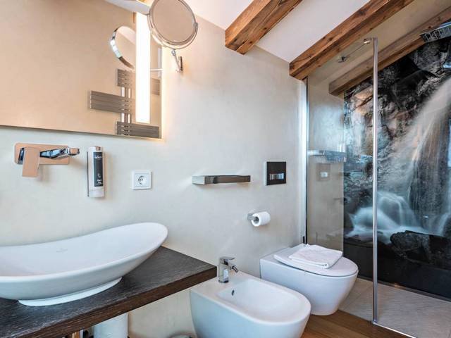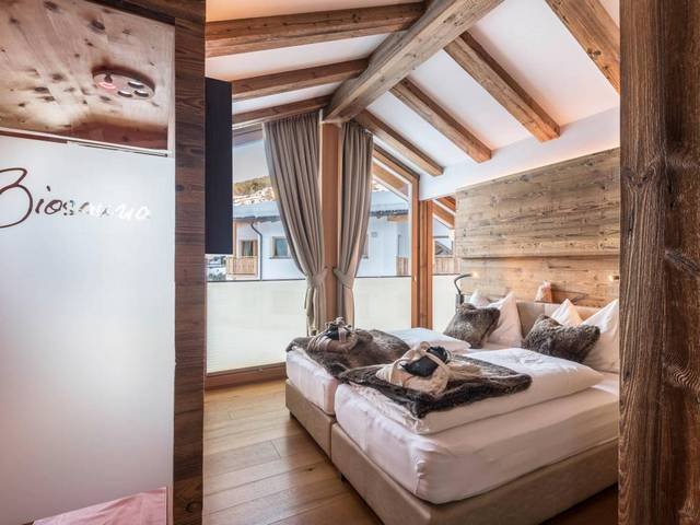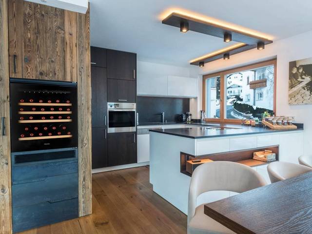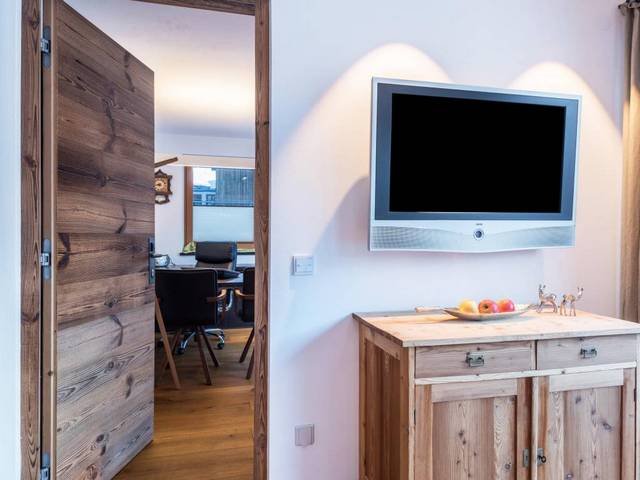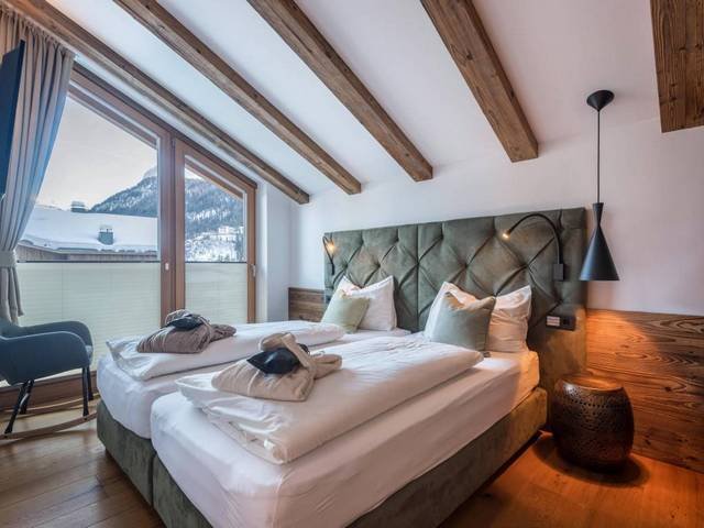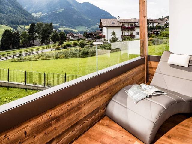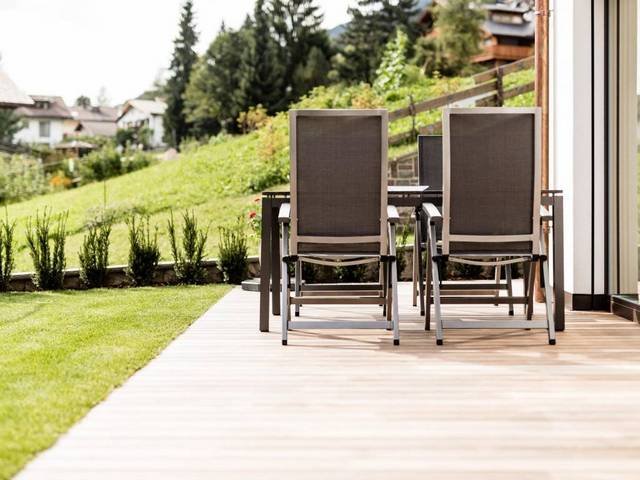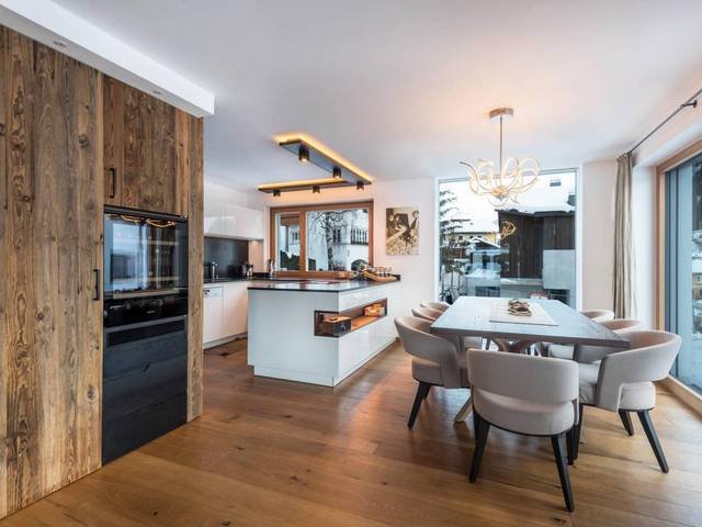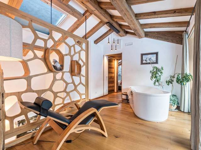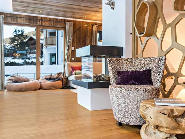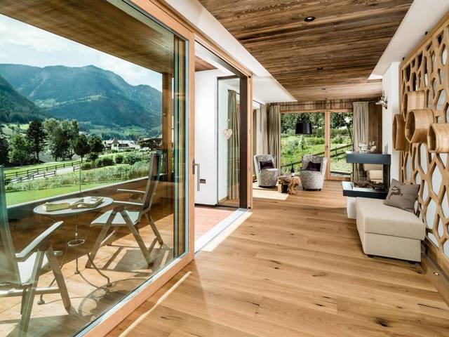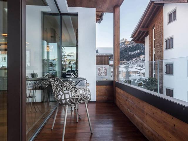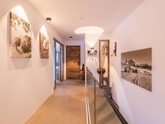Blending traditional alpine character with refined details, the chalet features a spacious open-plan living and dining area, a fully equipped kitchen, and inviting lounge spaces perfect for relaxing after a day on the slopes or exploring the mountain trails. Large windows and balconies offer sweeping views of the South Tyrolean Alps, filling the home with light and mountain charm.