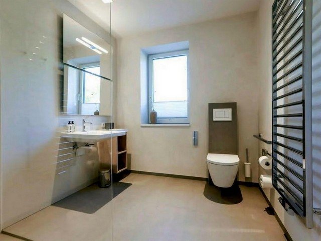 Exclusive new renovated country house on Fehmarn. The property consists of a main house, a spacious sauna house, garage for bicycles, carport and various terraces. The garden is approx. 2,700 square metres and offers plenty of space. It has an attractive mixture of old trees as well as newly planted trees, perennial beds, flower meadow and typical Fehmarnian bent plants. For the little ones, there is a large sandpit incl. things to dig in in front of the sauna terrace, the spacious terraces incl. fire bowl in front of the living area are equipped with sun loungers, large tables and chairs as well as an outdoor kitchen with barbecue and sink. A boules court invites you to play. The large sauna house with a view and access into the garden is designed for approx. 8 people. 4 rocking chairs, service station with refrigerator, a large shower area with rain shower, splash shower and Kneipp hose are available. The house is a holiday dream with all comforts. It is very exclusive and individually built and equipped with all imaginable extras. All bathrooms have underfloor heating, heated towel rails and washbasins made by a carpenter. The large glass fronts throughout the house allow for a spacious view and a very special living feeling, especially as the living and dining area opens up to the roof. In the utility room, guests have access to a washing machine and dryer. For the little ones there is a changing unit, cot, high chairs, baby bath, potty, toilet seat, a fall-out protection for 2 beds and children’s dishes. For dogs brought along, there is an extra dog shower, bowls and dog baskets.