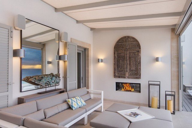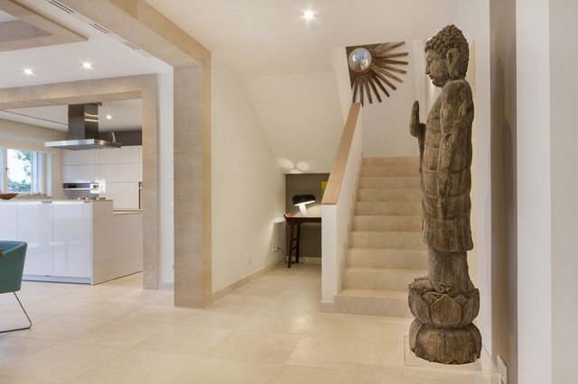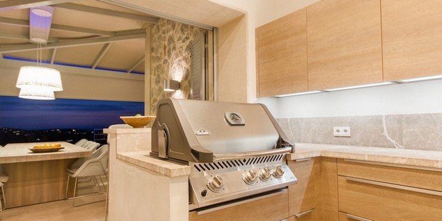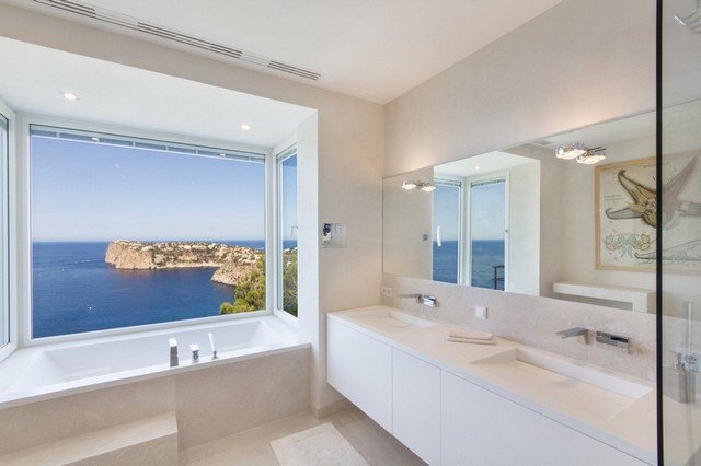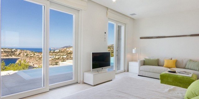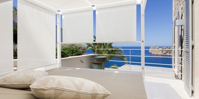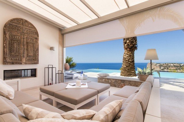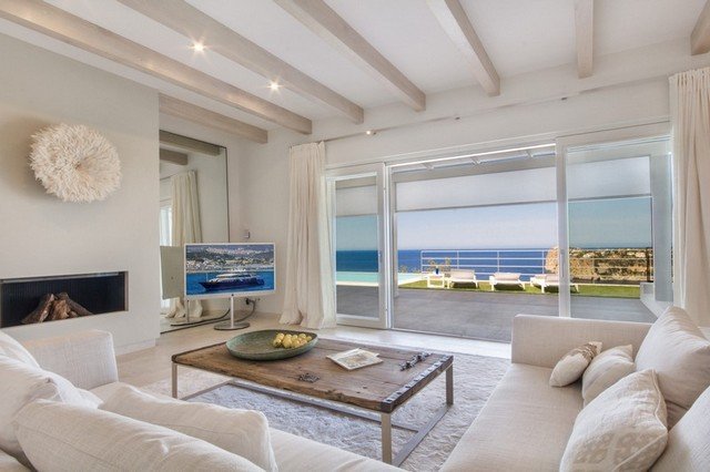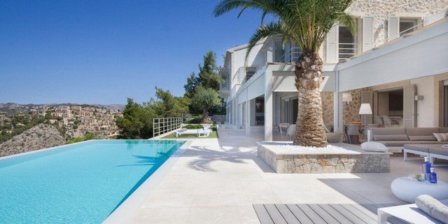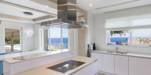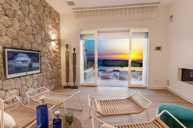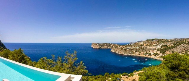 This modern interpretation of a Mallorcan villa is stylishly furnished, with an eye for individual detailing and exquisite works of art. There is ample space and luxury for up to 12 people in this one-of-a-kind location surrounded by unique natural countryside.The highlight of the villa is undoubtedly the panoramic view of the sea – yet the technology is impressive too…. Both the heated 15 x 5m pool as well as well as the jacuzzi features an automatic cover, the very best water quality thanks to Ospa technology and LED lighting – the colour of which can be selected to suite your taste and mood. The outdoor kitchen is perfect for hosting sumptuous BBQs.