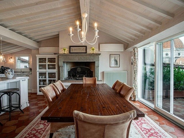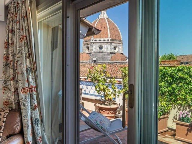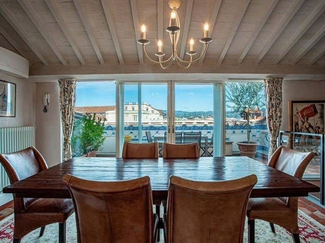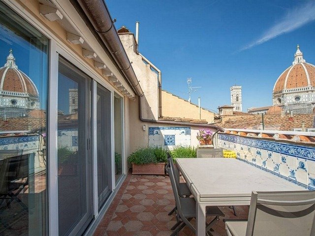 The apartment, with luxury finishes and furnishings, is located on the top floor of the striking Palazzo Visacci, offering stunning panoramic views of Florence and the Duomo. Equipped with an elevator, it is located a short distance from the cathedral of Santa Maria del Fiore, with Piazza della Repubblica and the Ponte Vecchio just a few minutes’ walk away. This elegant residence is ideal for reliable and responsible families or couples of friends.