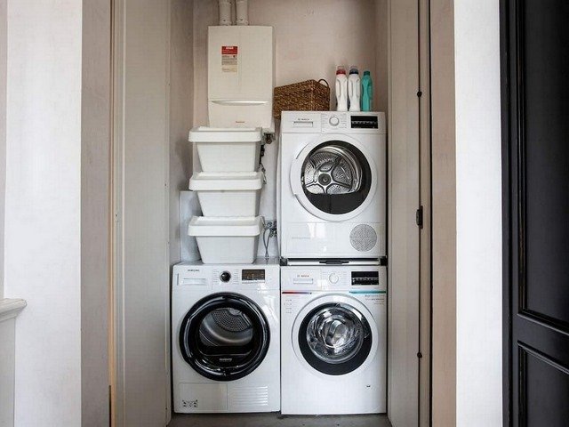 In the living room area there is a comfortable bathroom and a laundry area with a high quality washing machine and two dryers.