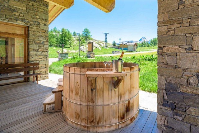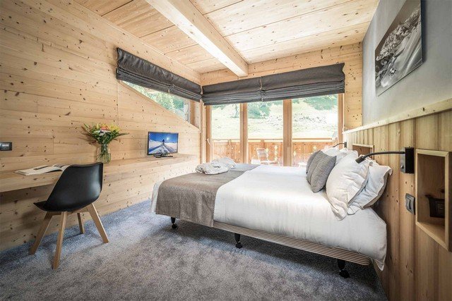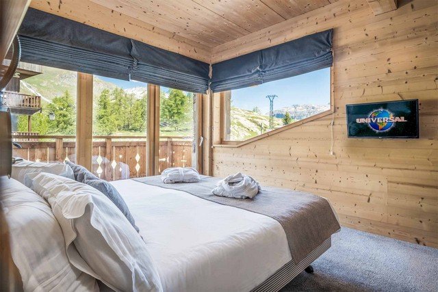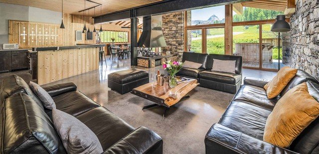 The fabulous Chalet is located on the Chemin des Boisses, right on the edge of the pistes, in the quiet and picturesque village of Tignes 1800. It is a beautiful, high spec seven bedroom chalet, with a stylish blend between modern and traditional design. The chalet has a spacious layout, spread across four floors, with the choice of stairs or a lift to access them, making it an excellent choice if you’re looking for somewhere with access for the handicapped, or you don’t fancy tackling the four flights of stairs. The interior of the chalet is bright and airy, with stunning floor to ceiling windows, from which you can admire the stunning mountain views.