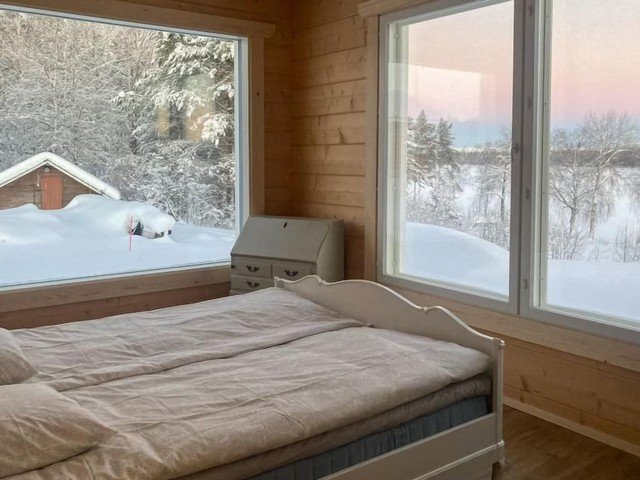 Villa Lehtoniemi is a magnificent large villa in the middle of beautiful landscape by the lake, half an hour’s drive from the center of Rovaniemi. Thanks to the villa’s many large windows, you can enjoy the surrounding scenery inside the villa. It is also possible to view the northern lights, for example, from the bedrooms, which are 5 in total.