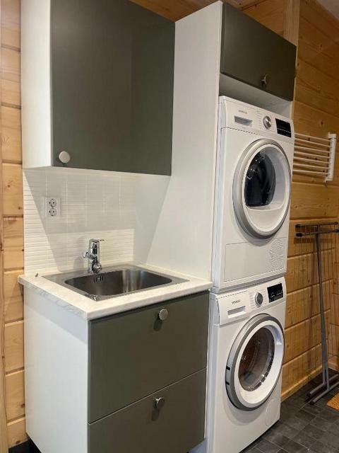Log villa, completed in 2022. Facilities on two floors. On the ground floor, large kitchen and 2 bedrooms with double beds. Also sauna, washroom, dressing room, utility room and WC on the ground floor.