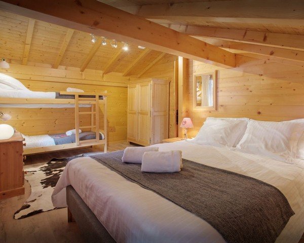 This cosy chalet comfortably sleeps 10 people in four bedrooms with three bathrooms. The accommodation is set over four floors, with the bedrooms arranged in groups of two which share a bathroom.