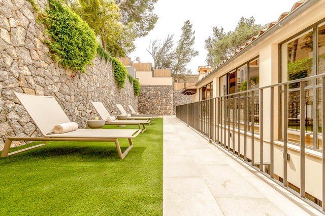 With your back to the harbour, follow your feet to the sun terrace as it wraps around the end of the villa, past the outdoor shower. Private and serene, lie back on one of the sun loungers. This is your space for taking it easy and soaking up the Mallorcan sun.